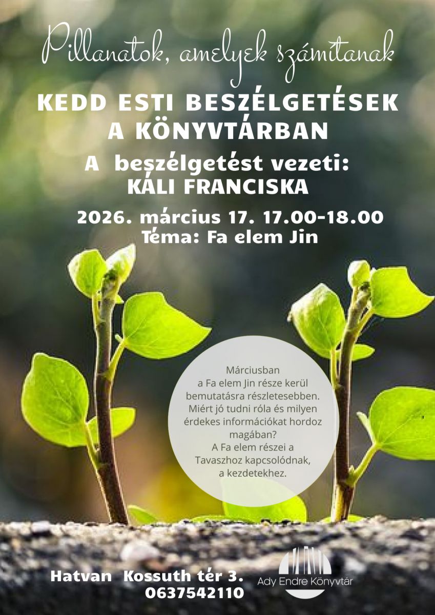 • Read more about Kedd esti beszélgetések - Fa elem Jin